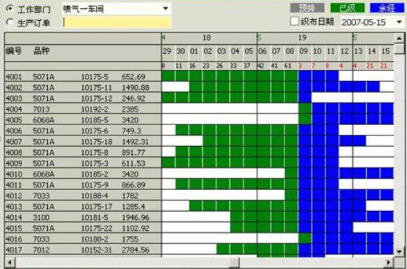 纺织行业系统,提供了高级计划调度工具,如图所示(多车间耦合调度系统)。使您在最大限度保证不拖期的情况下,协调各车间的机台排产。每一个调整,系统都会给出哪些机台是最适合加工的,放在哪些任务前面或后面将引起的设备重新准备时间,拖期程度提示,定义各种可能产生的事件提示,前后道工序的已经安排的时间,根据工艺路线以及加工时间,交期,原料到货时间,给出建议的排期。系统自动进行调度排产,给出排产的各种指标情况,如准时交单率,平均制造周期,平均拖期天数等。而这一切,都是专门为纺纱,织造准备,织造,针织,染色,后整理,络筒,并线而设计的。调度人员可以对络筒,细纱设备进行拆分,也可以对普梳,织造等相同设备进行组合。同一个设备上,您可以处理不同的加工过程。既可以处理批处理,也可以处理连续式加工。计划与调度专家会尽可能配合您处理各种纺织领域可能发生的情况。