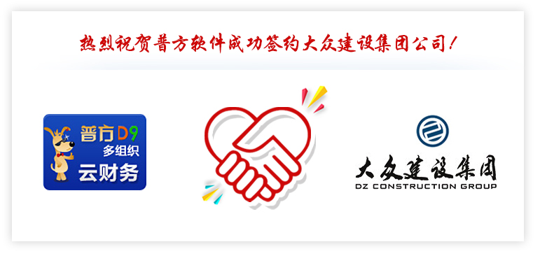 热烈祝贺普方软件成功签约大众建设集团公司! 助力客户集团财务管控和“营改增”新会计制度的实现,满足客户上市前的财务建设需求。