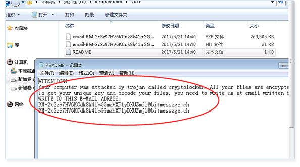 真实案例:5月21日我们在南山科技园的某客户中招了!重要的数据库和资料文件都被加密锁定!造成从周一开始工作几近瘫痪,本地服务器打开就显示勒索邮件如下图!网管匆忙结束休假归来,现在还在服务器抢救中。普方软件提醒各位客户一定备份好数据库做好安全措施!