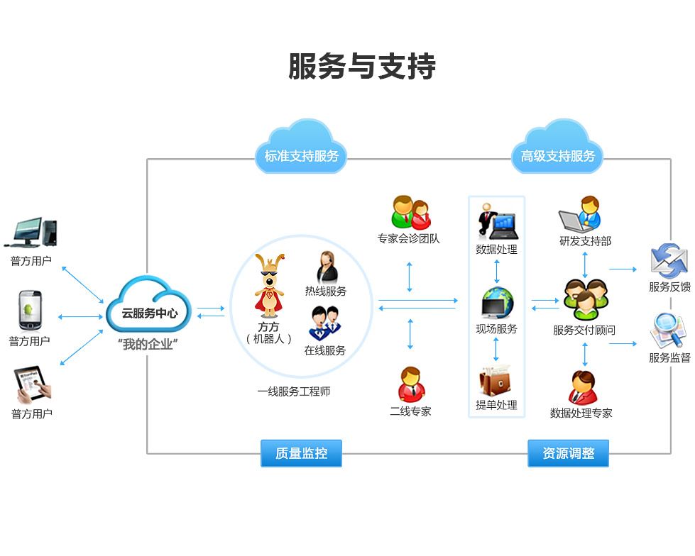 在线服务是通过电话,网络等方式 提供服务;线下服务是服务人员到 贵公司现场为您提供专属服务。