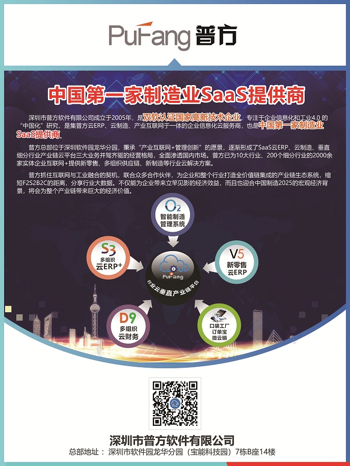 该方案包含了普方自主知识产权的SaaS云ERP、新制造、新零售、多组织供应链等软件系统,还包含了创新的“F2S2B2b2C”商业模式,来实现“实体+行业+互联网+科技+金融”,让我们携手进军产业互联网。